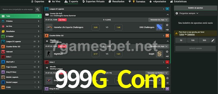O 999G Com oferece uma grande seleção de opções de apostas em e-sports com probabilidades competitivas